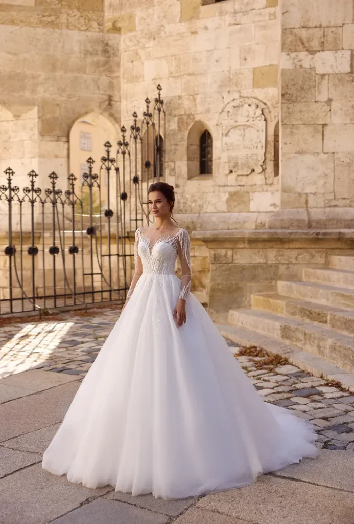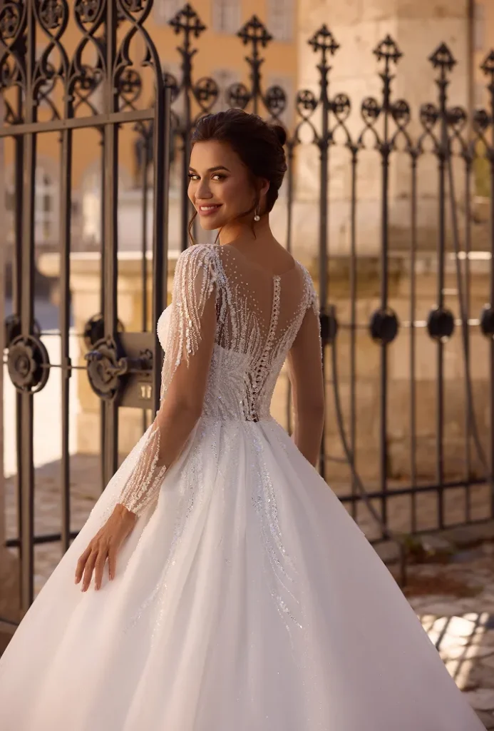 Lucienne is perfect for the bride seeking a refined, European-inspired look — elegant, luminous, and effortlessly beautiful.